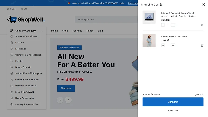 Elementor based eCommerce theme