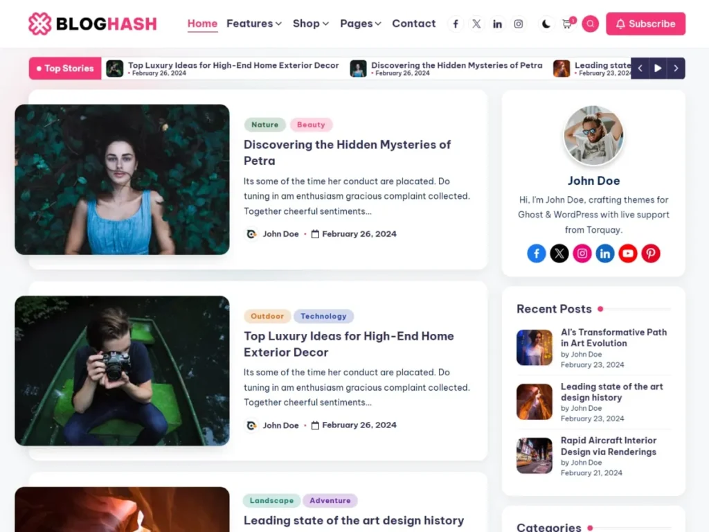 Experience the sophistication of BlogHash firsthand through its live preview at https://peregrine-themes.com/bloghash/#demos. Whether you’re launching a new blog or enhancing an existing one, BlogHash empowers you with intuitive tools and a polished design, setting a new standard in modern blogging themes.